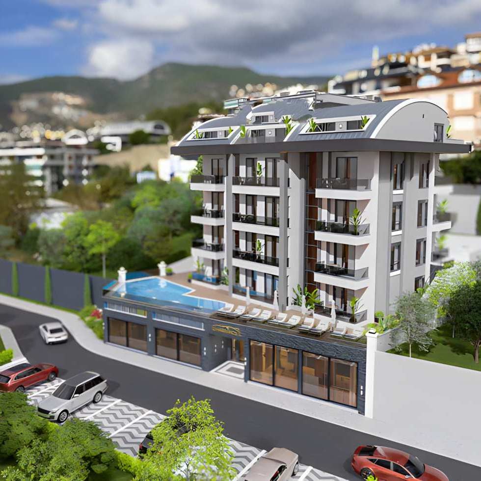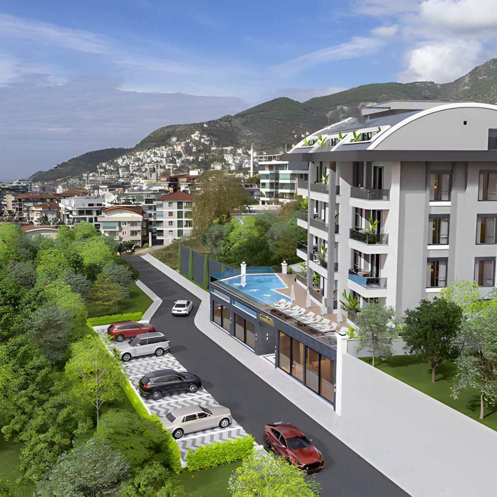 This is the last opportunity to become the owner of an apartment in this new block of flats in Alanya-Kucukhasbahka. The beach is 2 km from the estate. There is a shopping market in the area just 400 meters away.